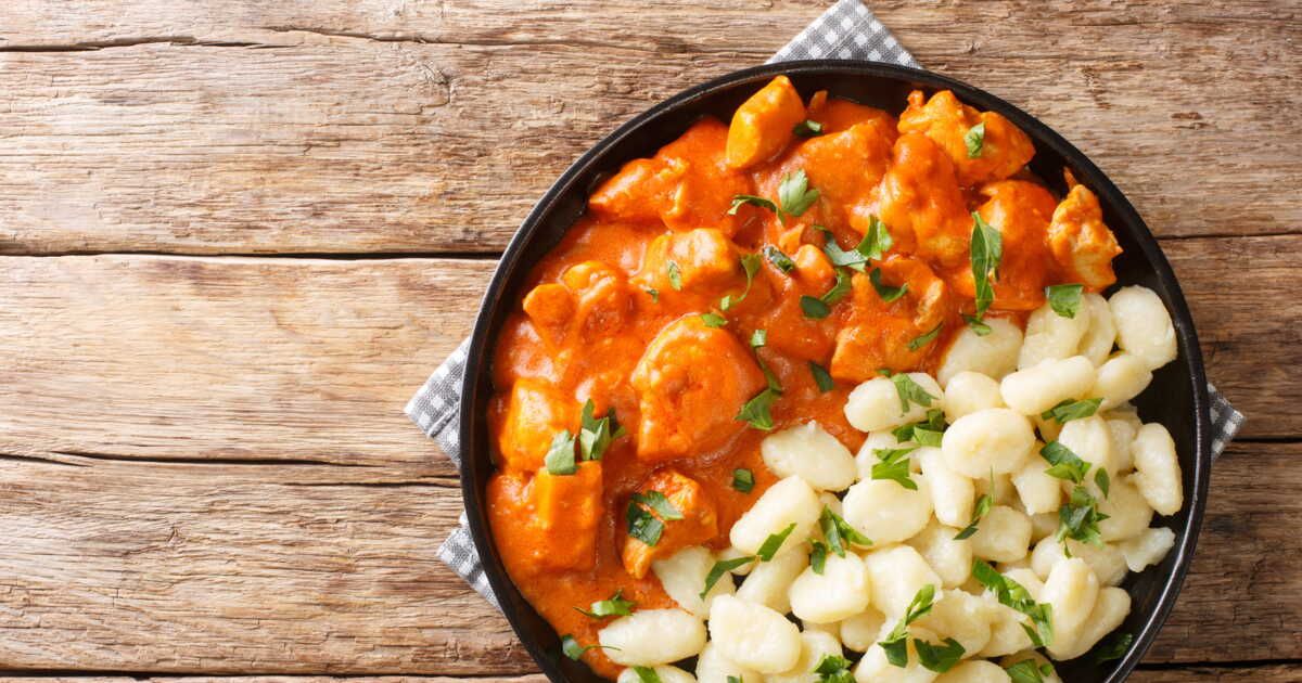 Originaire de Hongrie, le poulet au paprika met à l'honneur l'un des produits phares de ce pays : le paprika. Utilisé pour rehausser de nombreux plats, cet ingrédient apporte à la recette une profondeur de goût sans nécessiter une grande quantité de matières grasses. Traditionnellement, ce plat s'accompagne de spätzle, mais une purée de pommes de terre fait également merveille.