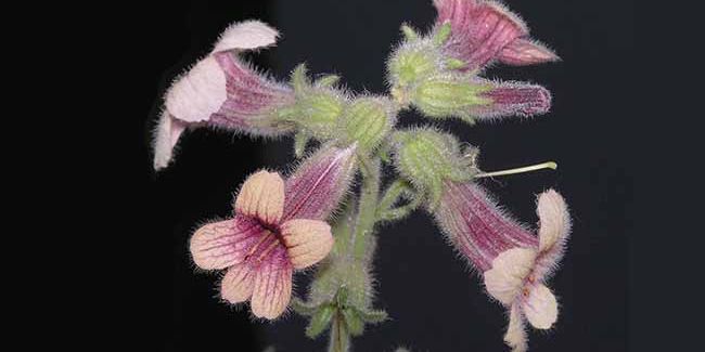 À l'extrémité de ses tiges ramifiées, cette plante offre de séduisantes fleurs bilabiées, disposées en grappes. Mesurant entre 3 et 5 cm, ces fleurs pendantes arborent un mélange de teintes brun-rouge, avec des nuances veillées et une lèvre jaune pâle. Ce caractère floral rappelle certaines espèces de digitaux, d’où son appellation de "digitale chinoise".