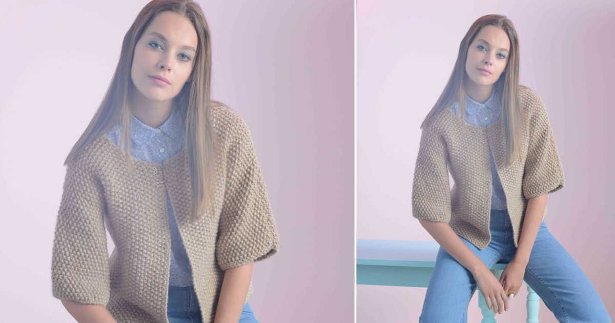 Offrez-vous un gilet élégant et confortable, inspiré du style kimono, parfait pour toutes les occasions. Ce modèle se distingue par son encolure large et sa confection simple, où les manches sont tricotées directement après le corps.