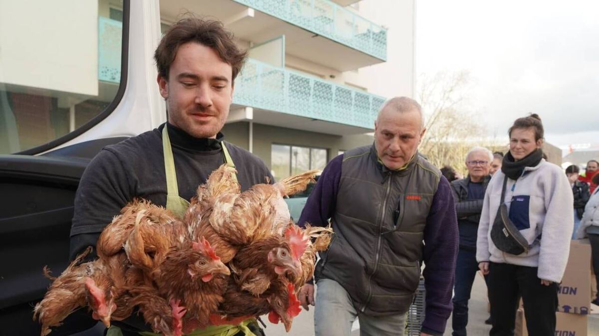 Sur le parking d'un Biocoop à Avrillé, près d'Angers, une quinzaine de personnes, carton en main, attendent avec impatience l'arrivée d'un van rempli de ces précieuses volailles. Marc-Antoine Gatelet, membre actif de l'association, mime l'enthousiasme, plongeant ses mains dans les cages pour en sortir les poules qui caquettent joyeusement. Les intéressés se disent ravis de contribuer à cette démarche de sauvetage.