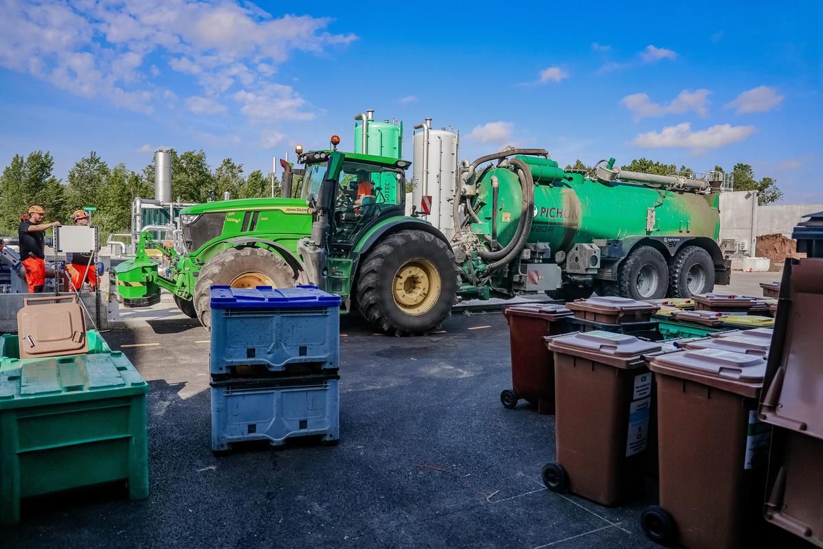 Les déchets subissent un tri dans un déconditionneur avant d’être broyés et envoyés dans le digesteur, un cylindre en métal qui simule le processus digestif d'une vache. Ce processus de digestion des déchets produit un mélange de méthane et de CO2, qui nécessite environ soixante jours avant d'être purifié pour l'injection dans le réseau.