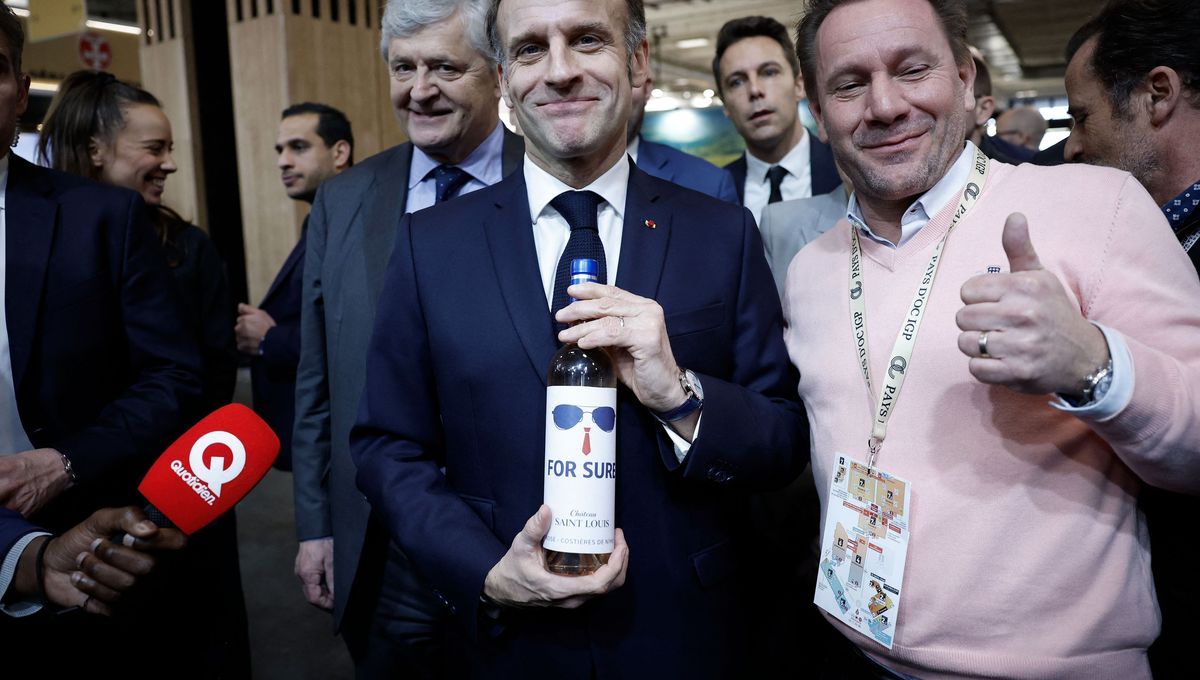 Lors du salon Wine Paris, Emmanuel Macron a reçu en cadeau un rosé unique de la part d'un viticulteur du Gard. L'étiquette, sans château ni millésime, affiche les mots "For sure" accompagnés de lunettes d’aviateur et d'une cravate rouge, mettant en avant son style devenu iconique depuis Davos.